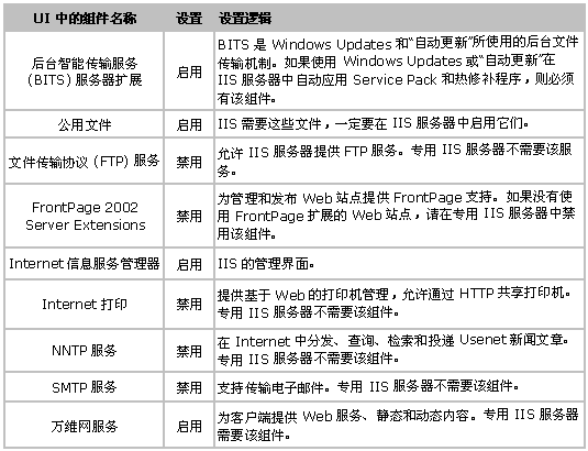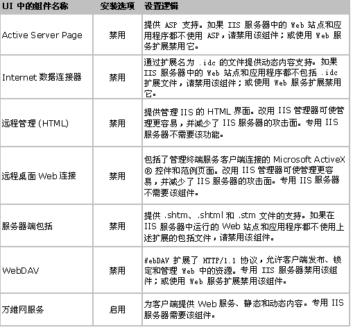 表 2 描述了 IIS 子组件,并提供了何时启用的建议。