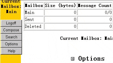 3、登录成功即进入8383端口的主屏幕!但刚进去时由于信箱是空的,因此相应的邮箱链接被IMail设置成了不可进!如下图: