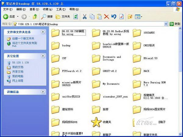 第五步:退出注册表编辑器后重新启动计算机,我们会看到问题已经彻底解决。我们在员工计算机上通过网上邻居或UNC地址访问服务器上共享资源可以顺利的看到里面的文件和文件夹等数据。(如图5)