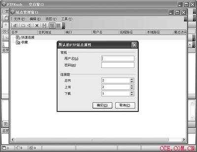 FtpRush默认的FTP最大连线数是2,如果想修改其连接数应当如何操作呢?按常规方法在每个站点属性中修改也未免太麻烦了,这里教给大家一个更快捷的方法。在FtpRush中按F3键调出“站点管理窗口”,再点击菜单栏“工具→默认的FTP站点属性”(如图2),在此就可在相应选项中随意修改。