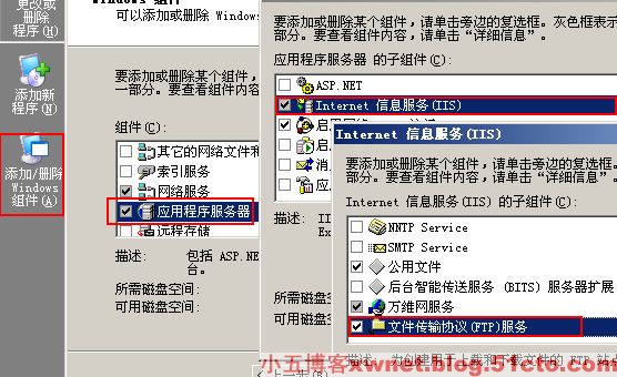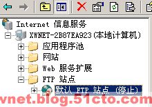 FTP文件传输协议,主要用于计算机之间文件传输,是互联网上仅次于www的第二大服务。本文主要演示如何在Windows Server 2003上配置FTP服务,包含不隔离用户、隔离用户和用Active Directory隔离用户三种方式的ftp。 【所需软件】 1、VMware Workstation 6.5 英文正式版 2、Windows Server 2003 SP2 企业版原版光盘镜像 【实验步骤】 一、安装FTP服务 1)单击开始-控制面板-添加或删除程序,单击添加/删除windows组件,双击应用程序服务,双击Internat信息服务(IIS),勾选文件传输协议(FTP)服务  二、创建不隔离用户FTP 1)单击开始-管理工具-Internat信息服务(IIS)管理器,展开FTP站点,右键单击默认FTP站点选择停止。暂停默认的FTP服务