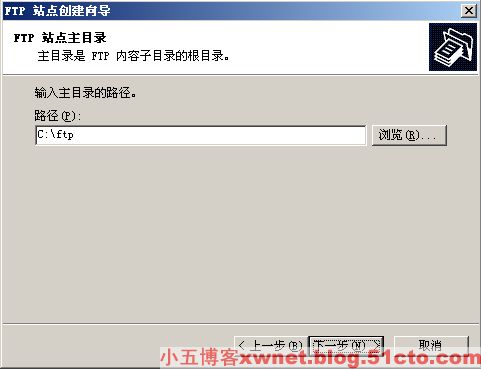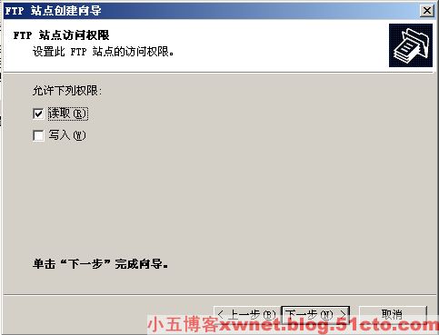 5)选择ftp主路径 6)设置FTP权限 7)成功建立ftp站点