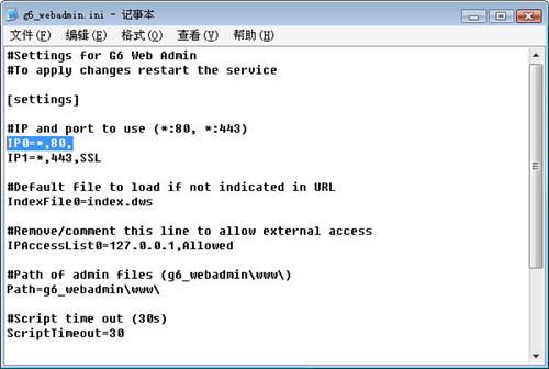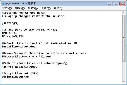安装完毕后我们进入G6的安装目录,打开Plugins目录下的g6_webadmin.ini,找到下面的内容: