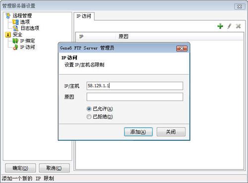 方法二实际上是从权限入手来解决GENE FTP的远程管理问题,总之就是要给对应的帐号一定的权限,还要为对应的IP地址授权,让他具备远程连接的权限。