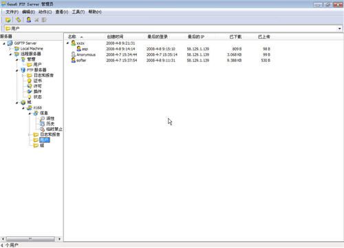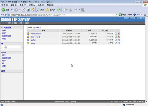 实际上我们通过WEB页面访问GENE管理端登录进去的界面和平时使用客户端进行远程连接管理以及直接在服务器上的gene server主程序操作一样,只不过这些信息都是以页面的方式提供给我们,通过这样甚至可以让我们避免了远程连接出错的问题,也不需要我们再在客户端上安装任何GENE程序来连接服务端,直接利用IE浏览器轻松实现了管理FTP服务器的功能。(如图14)