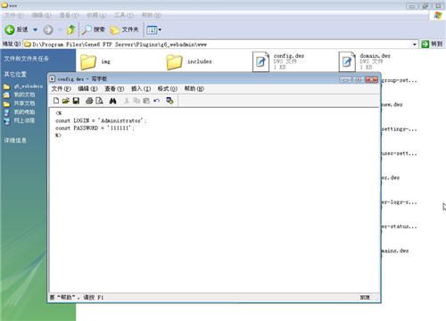 这里所说的GENE Web管理页同样需要我们输入用户名和密码,不过这些用户名、密码是独立的,和我们在gene 6 ftp server程序中添加设置的不是同一个信息,因此在开启WEB服务以及对应端口后我们还需要为登录帐户进行添加。进入G6的安装目录,打开Plugins\g6_webadmin\www目录下的config.dws,找到下面的内容: