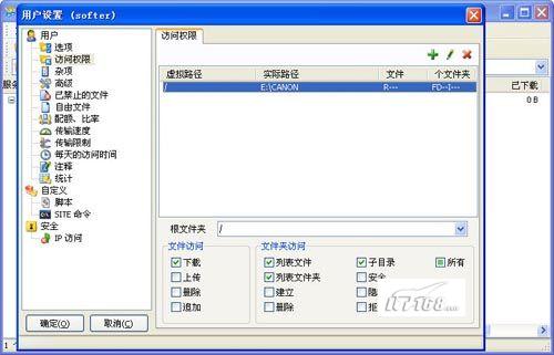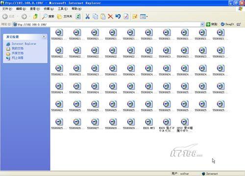 第十二步:之后我们就可以使用刚刚建立的FTP登录帐号softer访问我们的FTP站点了,所有操作都是和之前设置的权限挂钩的。(如图20)