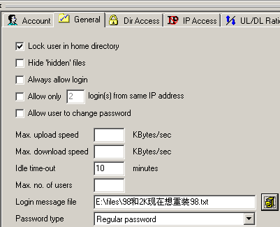第四节 Serv-U用户属性之“General”(常用)