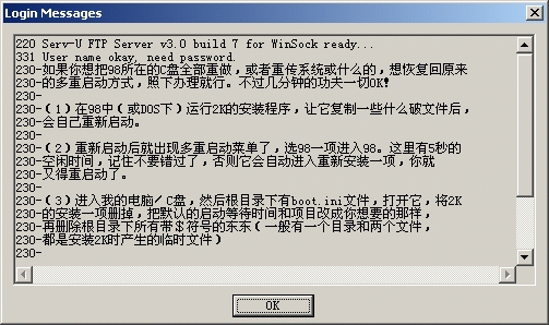 10、Logging message file(登录信息文件):在这里可以输入(或选择)一个事先建立好的文本文件(一般)的完整路径和文件名,登录成功之后就会出现相关提示信息。提示信息如下图: