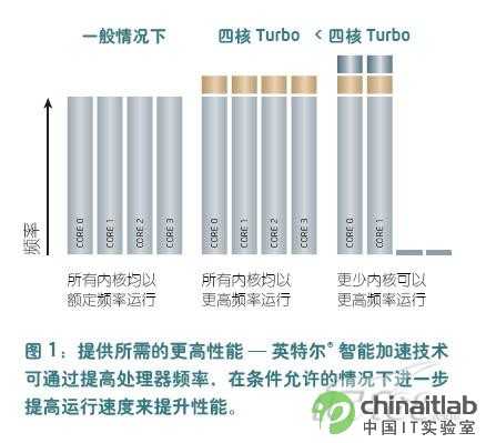 英特尔智能加速技术(Intel Turbo Boost Technology)与英特尔智能节能技术(Intel Intelligent Power Technology)相结合,可为用户提供所需的出色性能,在某些情况下支持处理器以超出额定频率的速率运行,进而提高特定工作负载下的运行速度。