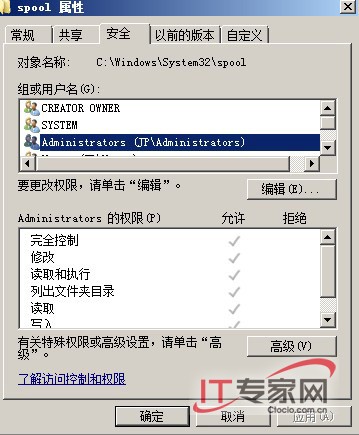 (5).检查权限设置。同样,我们也要检查打印机的权限设置,以确认是否拒绝该用户访问。此外,也要确保该用户对后台打印文件夹的访问权限。