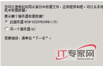 其次依照屏幕提示选中目标备份文件所在的位置选项,例如目标备份文件如果保存在本地的话,可以选中这里的“此服务器”选项,如果目标备份文件位置网络文件夹中的话,可以选中这里的“另一个文件”选项,之后依次选择好具体的目标备份文件、恢复类型,最后单击“确认”按钮,如此一来Windows Server 2008系统就会自动进行数据恢复操作了。