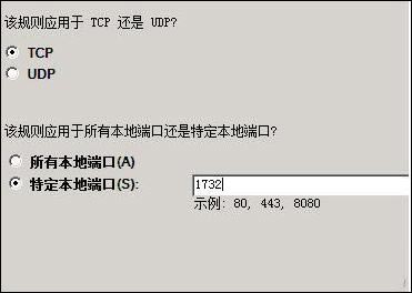 当向导窗口询问我们要创建什么类型的规则时,我们必须选中这里的“端口”选项,以便让Windows Server 2008服务器系统对通过VPN连接端口的数据包进行身份验证操作;选中“端口”选项后,单击“下一步”按钮,打开如图1所示的向导设置界面,再将该设置界面中的“TCP”协议选项选中,同时选中“特定本地端口”选项,然后在对应“特定本地端口”选项的文本框中输入VPN服务器缺省使用的“1723”端口;